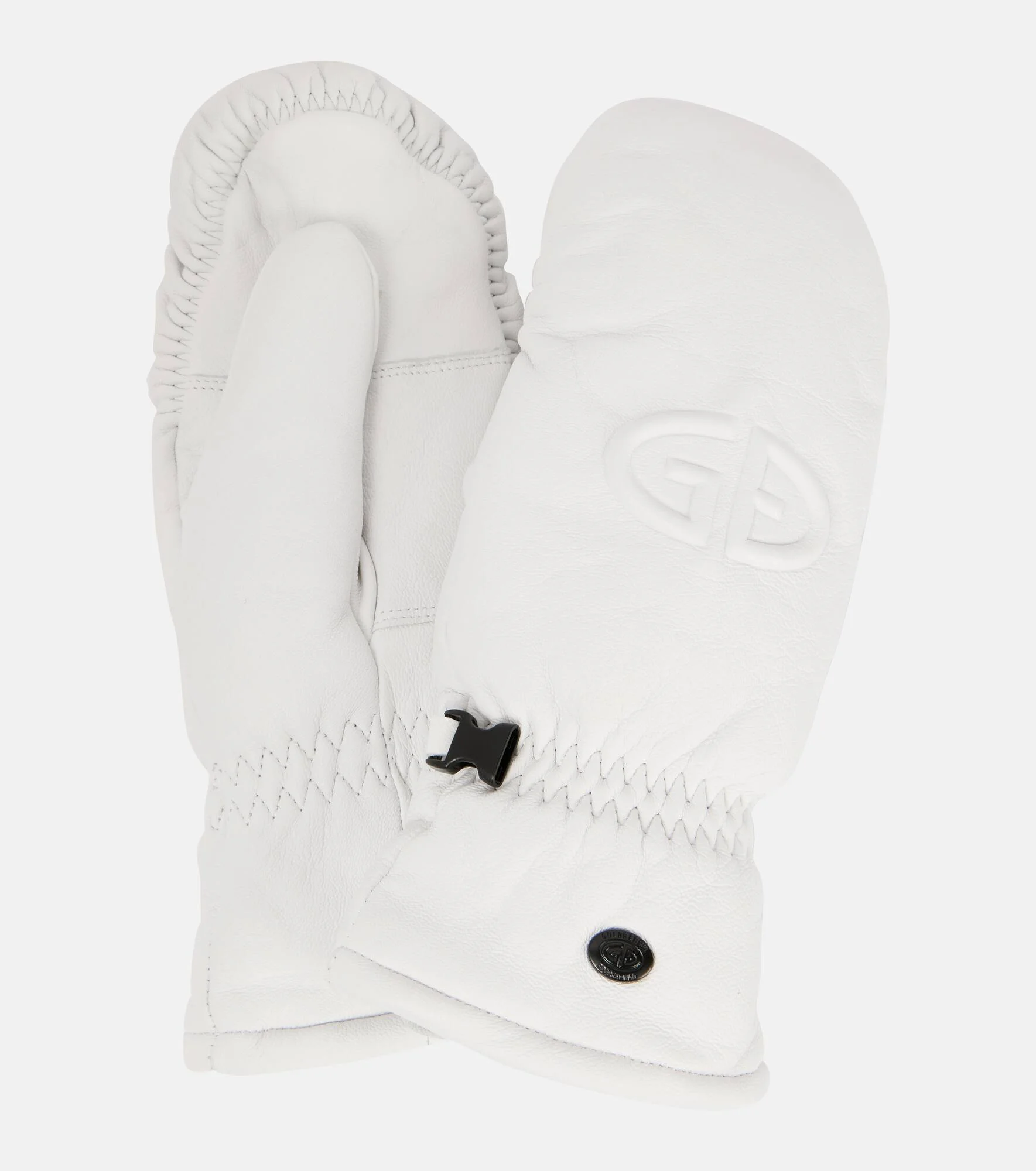 The Hilja ski mittens from Goldbergh are primed to keep you warm on the slopes. Waterproof and breathable, this style is crafted from leather and embossed with the brand's logo on the top. Product Details - Material: 100% goat leather - Care instructions: specialist clean - Made in China - Designer color name: White - Item color: white - Contains non-textile parts of animal origin - Item number: P01065523