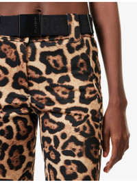 PRODUCT DETAILS - Goldbergh woven trousers - 100% polyester; lining 100% polyester - Concealed button, hook-and-eye and zip-fly fastening at front - Slim fit, high-rise, straight leg, belt loops, detachable branded belt, all-over leopard print, brand patch at zipped cuffs, flared cuffs - Machine wash at 30°C - True to size - Size UK 8: rise 11in / 29cm, inside leg 29in / 75cm, leg opening 18in / 46cm - Model is 5ft 10in/1.78m and wears a size UK 8 - Midweight, stretchy Ref: R04492728