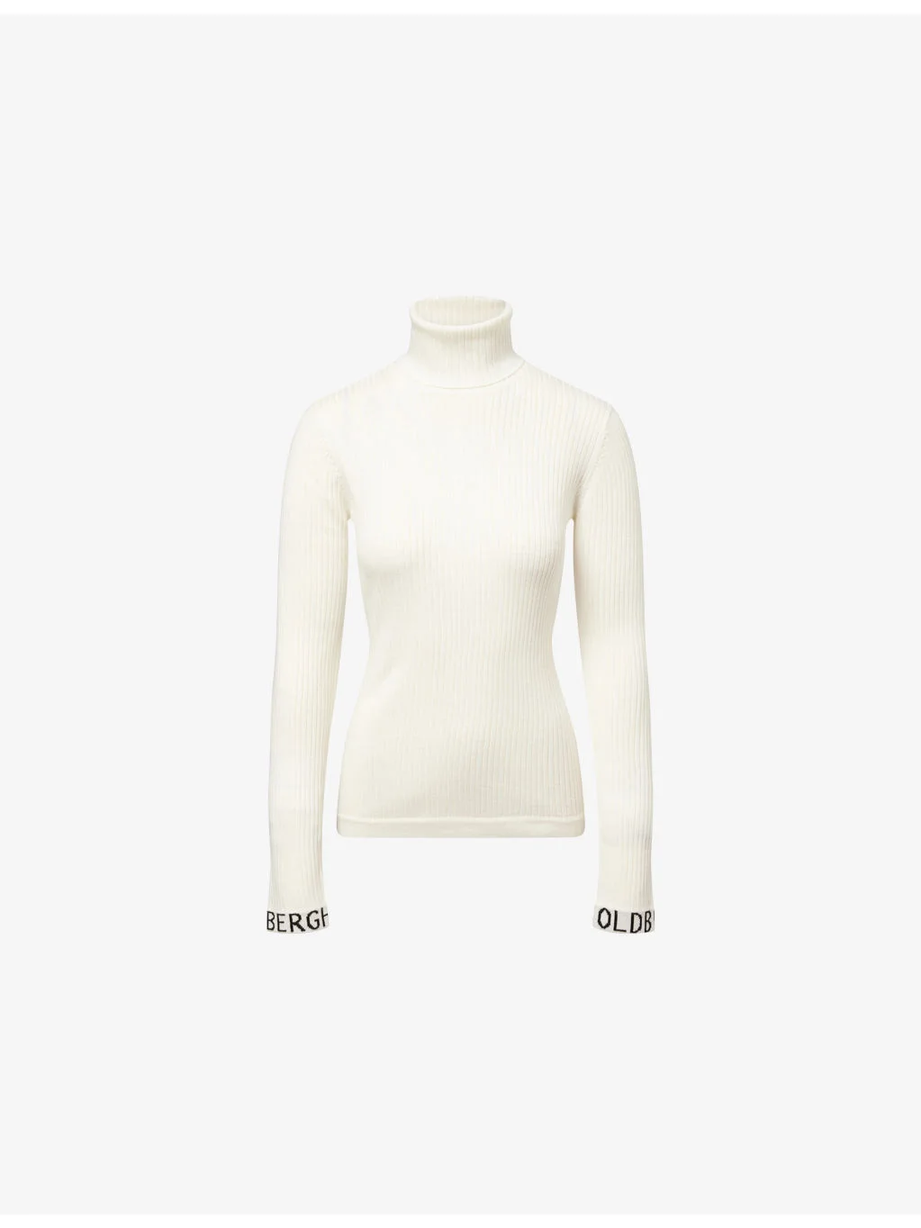 PRODUCT DETAILS - Goldbergh wool-blend jumper - 45% acrylic, 30% merino wool, 25% polyamide - Slim fit, high neck, long sleeves, logo-print cuffs, metal brand label at sleeve, woven brand label at side, all-over fine-ribbed texture - Machine wash at 30°C - True to size - Model is 5ft 10in/1.78m and wears a size small - Lightweight, stretchy Ref: R04492738