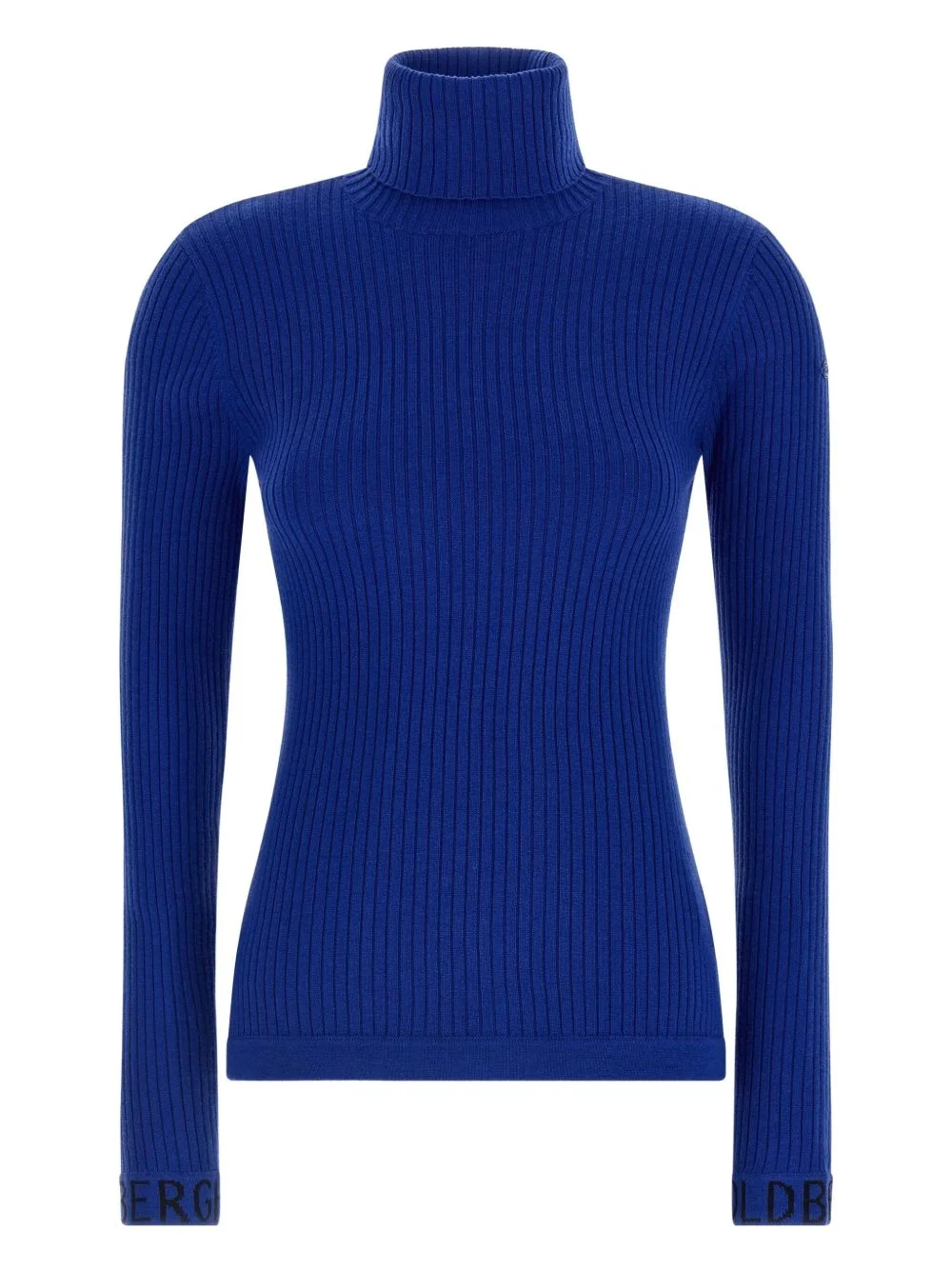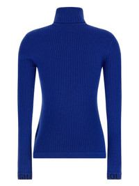 riMira turtleneck pullover Highlights - Blue - Ribbed knit - High neck - Long sleeves - Metal tag applique - Logo intarsia Imported Composition Eco Acetate 45%, Wool 30%, Recycled Polyester 25% Washing instructions Read Manufacturer Guidelines
