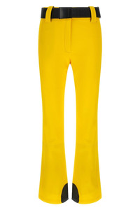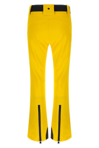 cod. GB001702541186 'Pippa' 3-layer Softshell ski pants with water-repellent and breathable 4-way stretch, front zip and snap button closure, zip leg bottom, silicone reinforcement with embossed logo and inner gaiter, removable belt. Color: Yellow Size & Fit: slim fit - FRENCH size Composition: 49% polyester 30% polyamide 12% polyurethane 9% elastane Made in: Poland