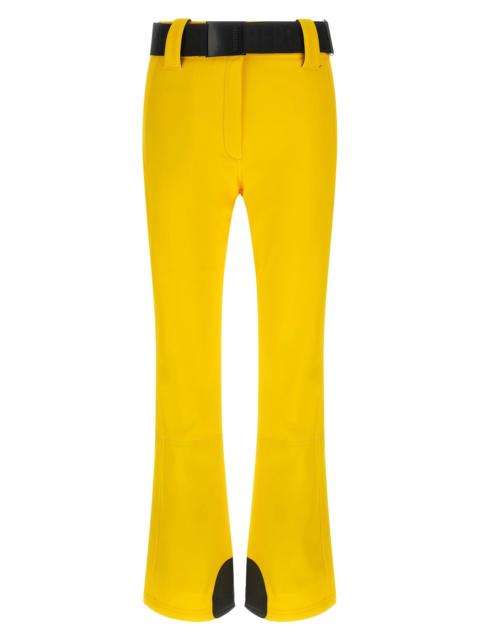cod. GB001702545634 'Pippa' 3-layer Softshell ski pants with water-repellent and breathable 4-way stretch, front zip and snap button closure, zip leg bottom, silicone reinforcement with embossed logo and inner gaiter, removable belt. Color: Blue Size & Fit: slim fit - FRENCH size Composition: 49% polyester 30% polyamide 12% polyurethane 9% elastane Made in: Poland