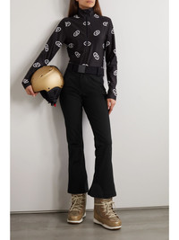 Goldbergh's 'Pippa' ski pants are not only sleek but designed with plenty of practical details for unrestricted movement. They're made from four-way stretch-shell and have a belt to keep them in place. The cuffs are flared and fitted with zips to sit comfortably over boots. Size & Fit - Fits true to size, take your normal size - The model is wearing a size larger to achieve a relaxed fit - High-rise, intended for a slim fit with a flared hem - Internal ankle gaiters - Mid-weight, breathable, stretchy fabric - Model is 177cm/ 5'10" and is wearing a UK 10 Details & Care - Black stretch-shell - Concealed hook and zip fastening at front - 49% polyester, 30% polyamide, 12% polyurethane, 9% elastane - Machine wash