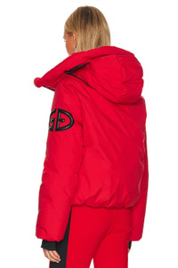 - Polyester blend - Imported - Dry clean recommended - Front zipper closure - High collar design with concealed hood - Attached internal carry strap - Side slant zipper and interior pockets One sleeve ski-pass pocket - Raised sleeve logo detail - Revolve Style No. GDBE-WO44 - Manufacturer Style No. GB00214254