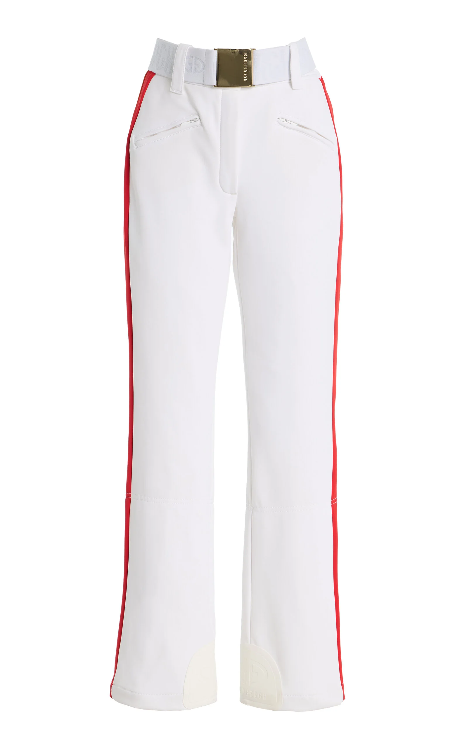 Luxury sportswear label Goldbergh imagines what the modern woman wants to pack in her suitcase when traveling to the slopes (think: fashionable and functional). The 'Roccia' pants are made from a flexible nylon blend with a slender fit and flared leg. The high-waisted design features zipped pockets, a belt, and snow gaitors. PRODUCT DETAILS - Suitable for sporting conditions - Resort '26 - Zip fastening through front - Composition: 74% Polyamide, 26% Elastane - Dry clean only - Imported SIZE & FIT - Our model is wearing a size FR 34 - Model is 5'10" with a 30" bust, 24" waist, and 34" hip - Designed for a slim fit