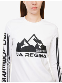 PRODUCT DETAILS - Goldbergh stretch-jersey T-shirt - 76% polyester, 24% elastane - Slim fit, round neck, long sleeves, la regina print at front and sleeves, woven brand label at side seam, moisture-wicking, quick-drying, anti-odor fabric - Machine wash at 30°C - True to size - Model is 5ft 10in/1.78m and wears a size small - Lightweight, stretchy Ref: R04492737