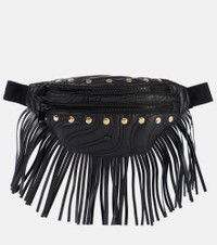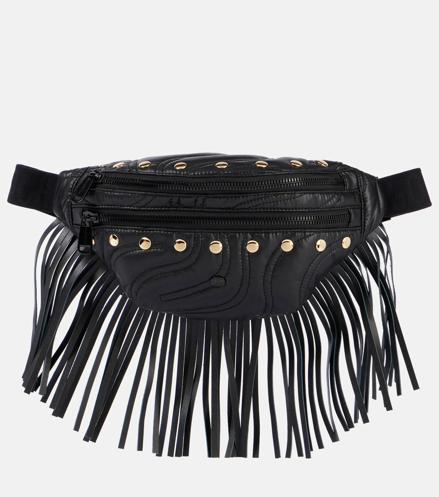 Goldbergh's Sorriso belt bag is made from quilted leather with tactile fringes and stud embellishments. The design is equipped with an adjustable strap and two zipped compartments for your small essentials. Product Details - Material: recycled polyester, polyurethane - Lining: fabric - Made in China - Designer color name: Black - Item color: black - Hardware color: gold - Item number: P01065515 Size & Fit - Height 14cm-5.5" - Min. width 17cm-6.5" - Max. width 32cm-12.5" - Max. depth 11cm-4.5" - Adjustable shoulder strap - Min. length shoulder strap 53cm-21" - Max. length shoulder strap 87cm-34.5" - Length of fringe 16cm-6.5"