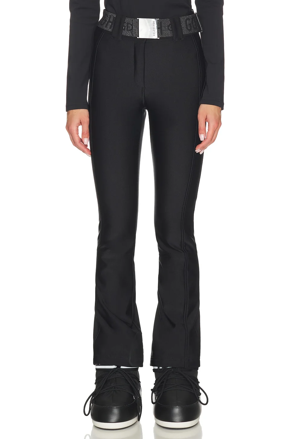 - 85% polyamide 15% elastane - Imported - Button and zip-fly closure with elastic belt; shaped seams; edge protection; zip-gusseted hem with snow-catcher.4-way stretch softshell fabric with water-repellent finish, high-rise fit in black - Features weather protection engineered for performance - Slim fit pant optimized for the slopes - Revolve Style No. GDBE-WP54 - Manufacturer Style No. GE02672254