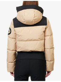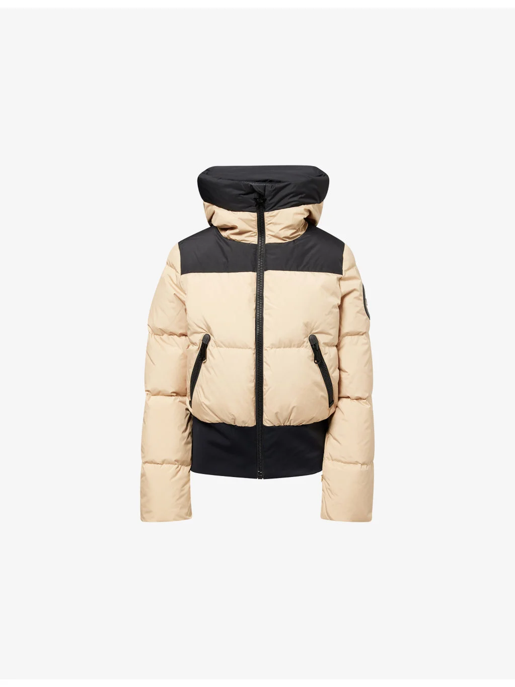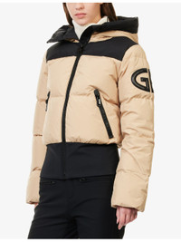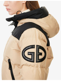 PRODUCT DETAILS - Goldbergh shell-down ski jacket - 100% polyester; contrast 74% polyamide, 26% elastane; filling 90% down, 10% feathers; lining 100% polyester - Exposed zip fastening at front - Relaxed fit, high neck, hood, long sleeves, ski pass pocket, knitted cuffs and hem, logo embroidered at sleeve, branded hardware, two side diagonal zip pockets, two interior zip pockets,quilted design, anti-odor finish - Machine wash at 30°C - True to size - Size UK 8: length 24in / 60cm - Model is 5ft 10in/1.78m and wears a size UK 8 - Midweight, non-stretch Ref: R04492715