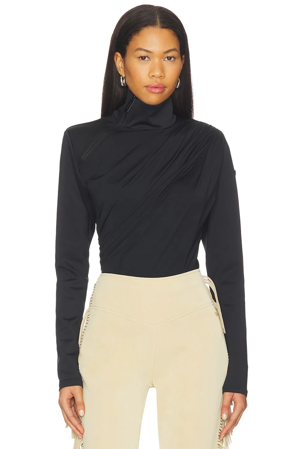 - Self: 87% recycled polyester 13% elastane Lining: 88% polyamide 12% elastane - Made in China - Machine wash cold - Gusset with snap button closure - Ruched bodice - Shoulder pads - Diagonal neckline zipper - Revolve Style No. GDBE-WS51 - Manufacturer Style No. GE30822254