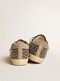 A timeless icon yet one that’s constantly evolving. At Golden, we love taking our classics and reworking them all the time, always from a new angle. These Super-Star with a gray nubuck upper illuminated by multicolored Swarovski pearls feature a star, heel tab and inserts in dove-gray suede. Beige laces add the finishing touch. DETAILS Item No. GWF00101.F005947.60522 - Upper in gray nubuck with multicolored Swarovski pearls - Dove-gray suede star - Dove-gray suede heel tab - Dove-gray suede inserts - Beige laces - Vintage finish - Upper: 47% polyethylene terephthalate, 31% cow leather, 22% cotton - Lining: 41% cotton, 31% cow leather, 18% textile polyurethane, 7% polyester, 3% viscose - Sole: 100% rubber - Handmade - Made in Italy