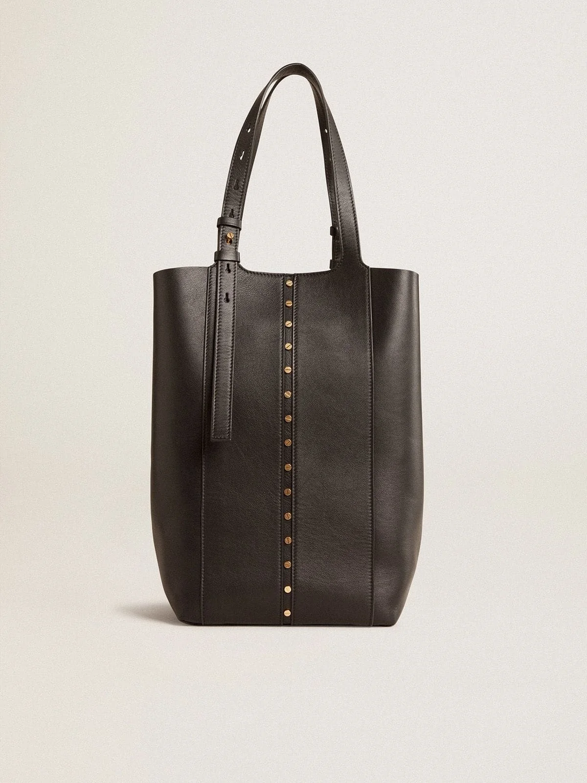 Tailored to meet the demands of metropolitan life, the 24/7 bag pays homage to the rhythm of the city. It offers two bags in one, allowing you to seamlessly move through your busiest days and nights. This black leather version features adjustable double handles and a gold logo on the front. The gold-tone studs that highlight the Bag’s elegance add the finishing touch. DETAILS Item No. 8050235822047 - Color: black - Inner bag - Inside pocket - Logo on the front - Gold-tone studs on both bags - Adjustable double handle - Main material: 100% cow leather - Lining: 100% cow leather - Size: 20 x 35 x 56 cm