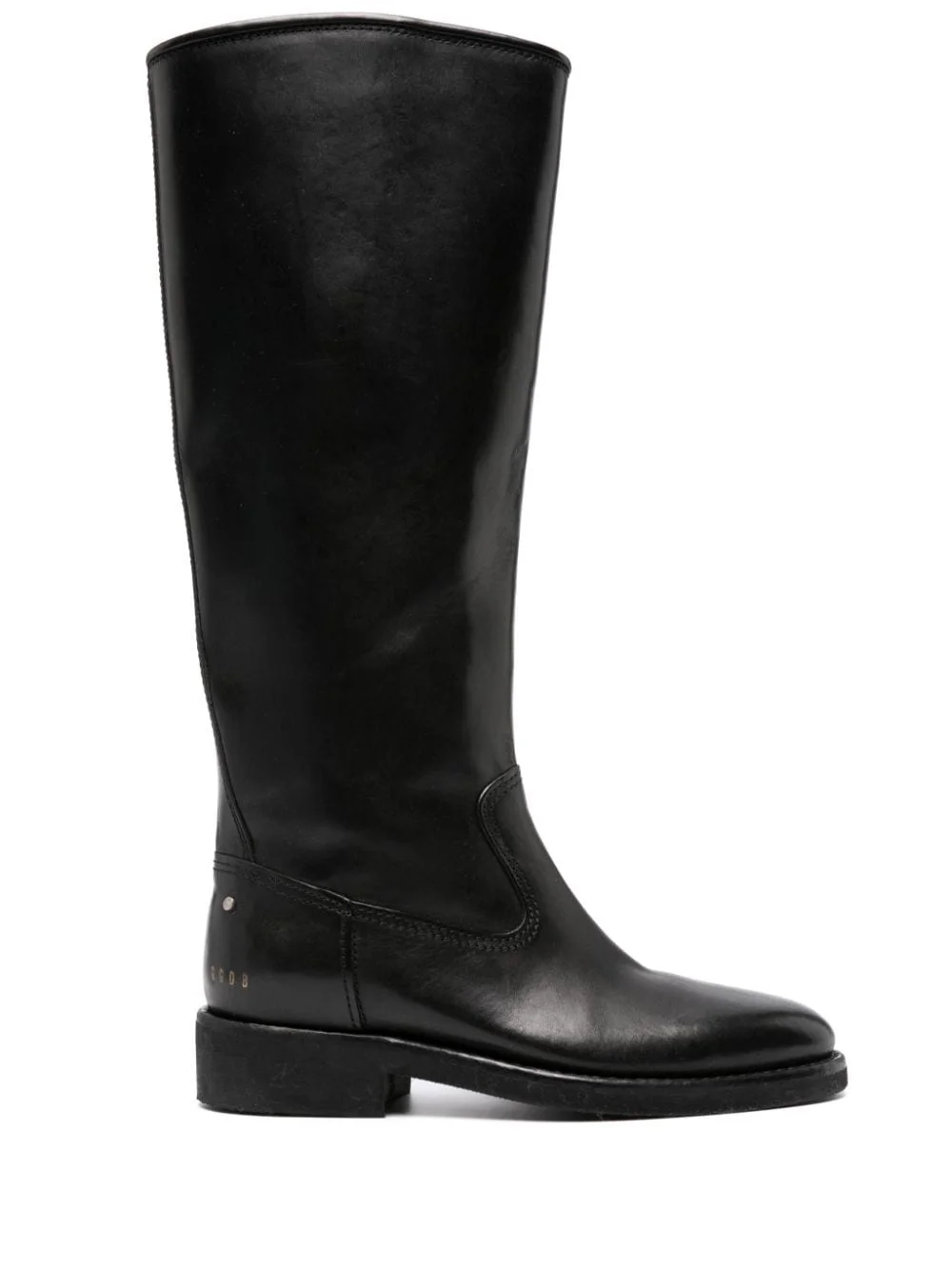 35mm leather knee-high boots Highlights - Black - Calf leather - Smooth grain - Polished finish - Almond toe - Knee-length - Low block heel Made in Italy Composition Leather 100% SIZE & FIT Measurement CIRCUMFERENCE 15.35 in(39 cm) HEEL 1.37 in(3.5 cm) HEIGHT 15.35 in(39 cm) Sole height 0.59 in(1.5 cm)