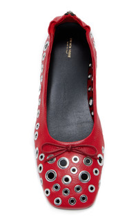 Amy Eyelet-Embellished Nappa Ballerina Flats red