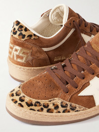 Crafted in Golden Goose's Italian atelier, these 'Ball Star' sneakers emphasize the brand's best-loved signatures. They're made from supple, hand-distressed suede trimmed with leopard-print calf hair and have comfortable rubber soles.