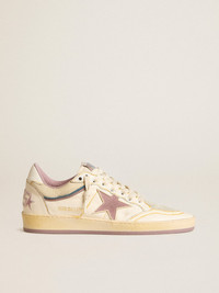 Dreaming of the Eighties. Our Ball Star sneakers have an American college vibe caught between a hoop shot and a skateboard ride. With a white nappa leather upper accentuated by mauve and turquoise trim, this model features a mauve TPU star with beige leather trim and a white leather heel tab. The ice-gray suede toe, beige nylon insert and tongue, and white laces add the finishing touch: beautiful things that never go out of fashion. DETAILS Item No. GWF00746.F005844.82652 - White nappa leather upper - Mauve TPU star with beige leather trim - White leather heel tab - Ice-gray suede toe - Beige nylon tongue - Beige nylon insert - Mauve and turquoise trim - White laces - Vintage finish - Upper: 46% sheepskin leather, 33% cow leather, 21% polyamide - Lining: 34% cow leather, 33% cotton, 30% polyester, 3% textile polyurethane - Sole: 100% rubber - Handmade - Made in Italy