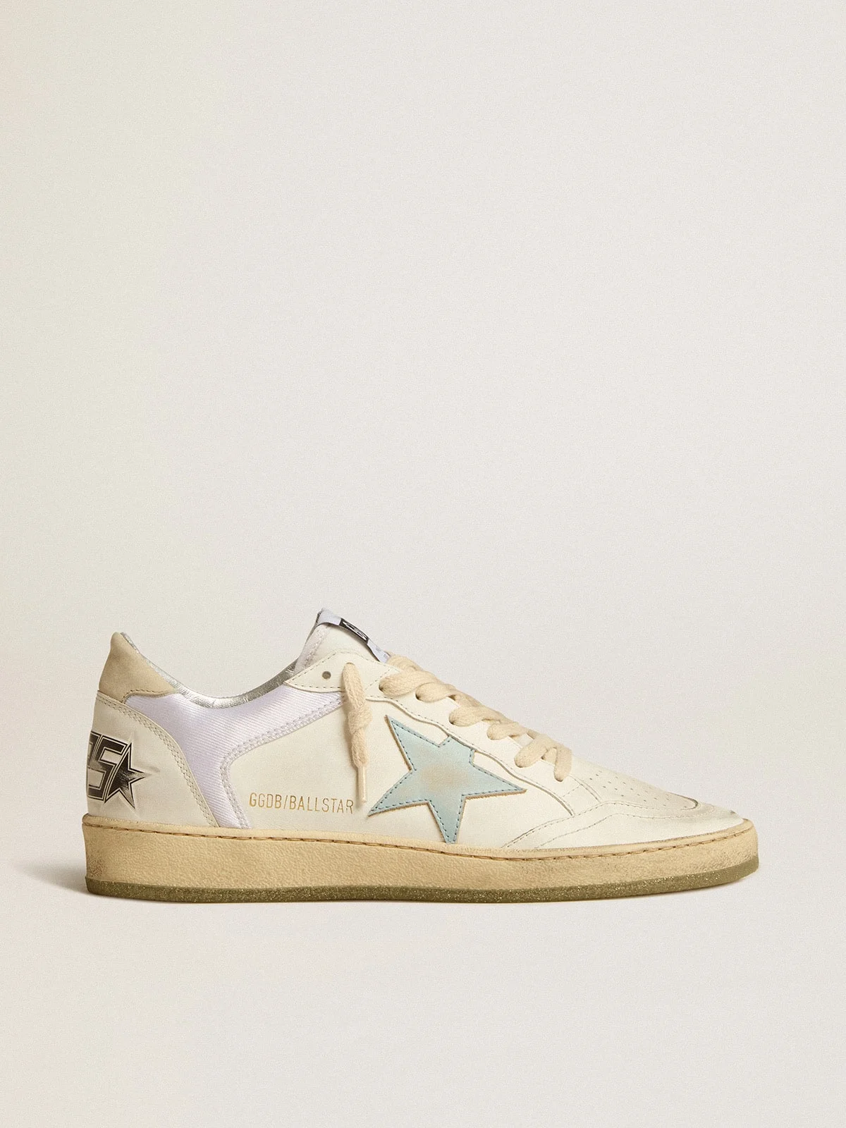 Dreaming of the Eighties. Our Ball Star sneakers have an American college vibe caught between a hoop shot and a skateboard ride. With a white nylon and leather upper, this model features a mismatched star, in light blue leather on the right sneaker and in pink leather on the left sneaker, and a beige leather heel tab. A military-green sole and cream laces add the finishing touch: beautiful things that never go out of fashion. DETAILS Item No. GWF00327.F005230.10548 - White nylon and leather upper - Light blue leather star on the right sneaker and pink leather star on the left sneaker - Beige leather heel tab - Cream laces - Military-green sole - Vintage finish - Upper: 74% cow leather, 22% polyester, 3% polyamide, 1% textile polyurethane - Lining: 34% cotton, 31% cow leather, 28% sheepskin leather, 5% polyester, 2% textile polyurethane - Sole: 100% rubber - Handmade - Made in Italy