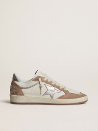 Dreaming of the Eighties. Our Ball Star sneakers have an American college vibe caught between a hoop shot and a skateboard ride. Like this model crafted in white nappa leather with old rose suede inserts, featuring a metallic silver leather star and heel tab. The white laces and Sneakers lettering on the heel in a crystal heavy metal font add the finishing touch. DETAILS Item No. GWF00913.F007294.12246 - White nappa leather upper with old rose suede inserts - Silver metallic leather star - Silver metallic leather heel tab - Sneakers lettering on the heel in a crystal heavy metal font - White laces - Vintage finish - Upper: 93% cow leather, 7% sheepskin leather - Lining: 34% cotton, 31% cow leather, 24% textile polyurethane, 7% viscose, 4% polyester - Sole: 100% rubber - Handmade - Made in Italy