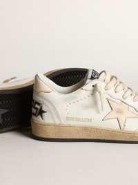 Dreaming of the Eighties. Our Ball Star sneakers have an American college vibe caught between a hoop shot and a skateboard ride. With its white nappa leather upper, this version features a salmon-pink nappa leather star and heel tab. The cream laces add the finishing touch: beautiful things that never go out of fashion. DETAILS Item No. GWF00117.F003428.10816 - White nappa leather upper - Salmon-pink nappa leather star - Salmon-pink nappa leather heel tab - Cream laces - Vintage finish - Upper: 85% goatskin leather, 7% sheepskin leather, 5% polyester, 3% polyamide - Lining: 64% cow leather, 36% cotton - Sole: 100% rubber - Handmade - Made in Italy