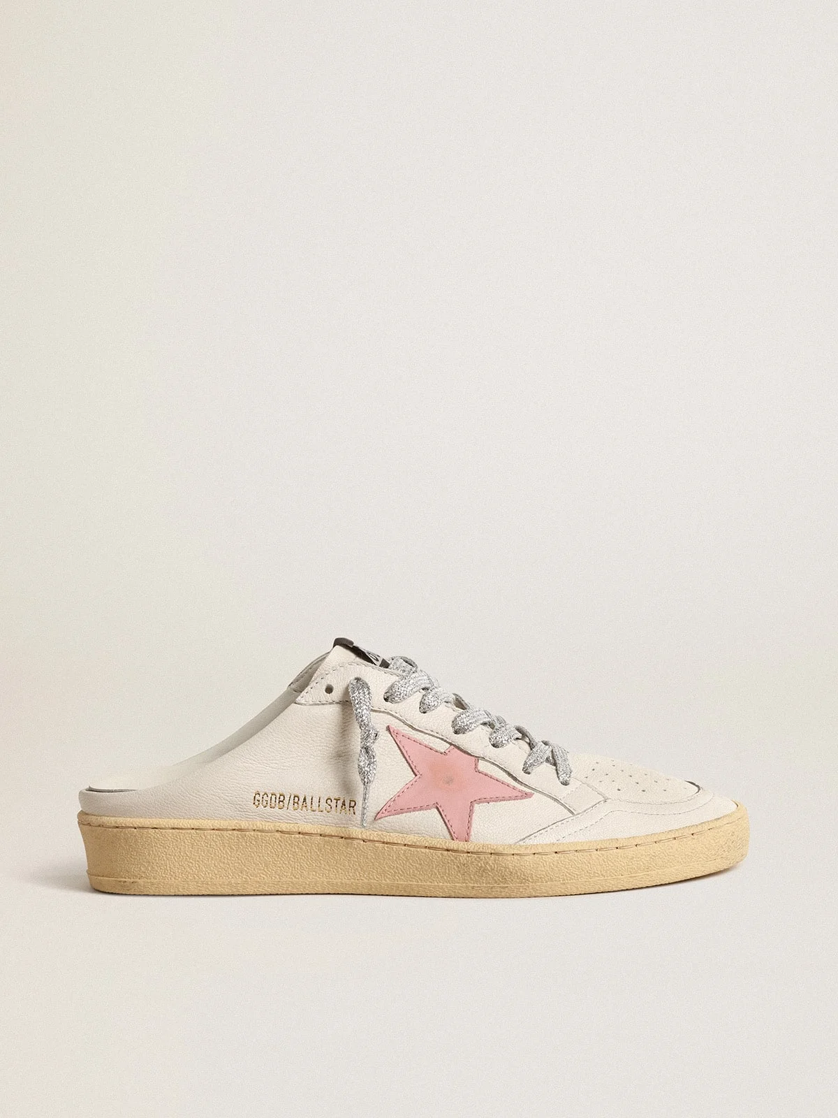 Dreaming of the Eighties. Our Ball Star sneakers have an American college vibe and a feeling of the basketball scene around at the time. This sabot version features a white nappa leather upper accentuated with an old-rose leather star. And the silver lurex laces add the finishing touch: beautiful things that never go out of fashion. DETAILS Item No. GWF00436.F004626.11202 - White nappa leather upper - Old-rose leather star - Silver lurex laces - Vintage finish - Upper: 96% goatskin, 4% cow leather - Lining: 40% cow leather, 34% textile polyurethane, 16% cotton, 10% viscose - Sole: 100% rubber - Handmade - Made in Italy