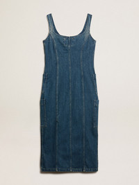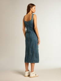 From Venice, our home, to Paris, our dream. This Journey Collection captures the essence and beauty of everyday moments in the City of Lights, immersed in a mesmerizing atmosphere where intimacy, authenticity and curiosity are the pulsating soul of it. This women's dress in blue cotton denim features a round neck and four pockets. The fastening with golden heraldic buttons adds the finishing touch. DETAILS Item No. GWP01689.P001484.50100 - Journey Collection - Color: blue - Double star on the back - Medium wash - Round neck - Fastening with golden heraldic buttons - Four pockets - Main material: 100% cotton - Made in Italy The model is 177 cm tall and is wearing a size S.