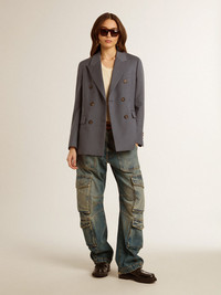 An ode to Venice, our home, seen with the eyes of those dreamers who live it every day. This Journey Collection explores the city of our roots, drawing inspiration from the people who inhabit it. Different, iconic places now discovered through the life of its lovers. These blue denim jeans with a lived-in look are extremely versatile. On the bottom hem, two buttons allow the width to be adjusted: you can choose a wide-leg shape, to wear with boots or even high heels, or slightly taper the leg to wear with sneakers. The ten pockets and the hand-worn areas on the edging inspired by typical work pants add the finishing touch. DETAILS Item No. GWP01617.P001258.50100 - Journey Collection - Color: denim blue - Distressed finish - Double star on the back - Ten pockets - Wide leg - Lived-in look - Main material: 100% cotton - Made in Italy The model is 177 cm tall and is wearing a size 27.