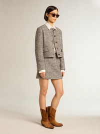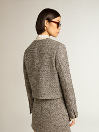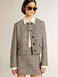 From Venice, our home, to Paris, our dream. This Journey Collection captures the essence and beauty of everyday moments in the City of Lights, immersed in a mesmerizing atmosphere where intimacy, authenticity and curiosity are the pulsating soul of it. This boxy cropped jacket in gray bouclé fabric features a button fastening and two front pockets. The message “let the beauty in” printed on the interior lining adds the finishing touch. DETAILS Item No. GWP01678.P001345.90422 - Journey Collection - Color: gray - Double star on the back - Boxy cropped fit - Button fastening - Bouclé fabric - Two pockets - Main material: 60% cotton, 20% polyester, 10% viscose, 10% acrylic - Lining: 100% viscose - Pocket material: 55% polyester, 45% viscose - Made in Italy The model is 177 cm tall and is wearing a size 40.
