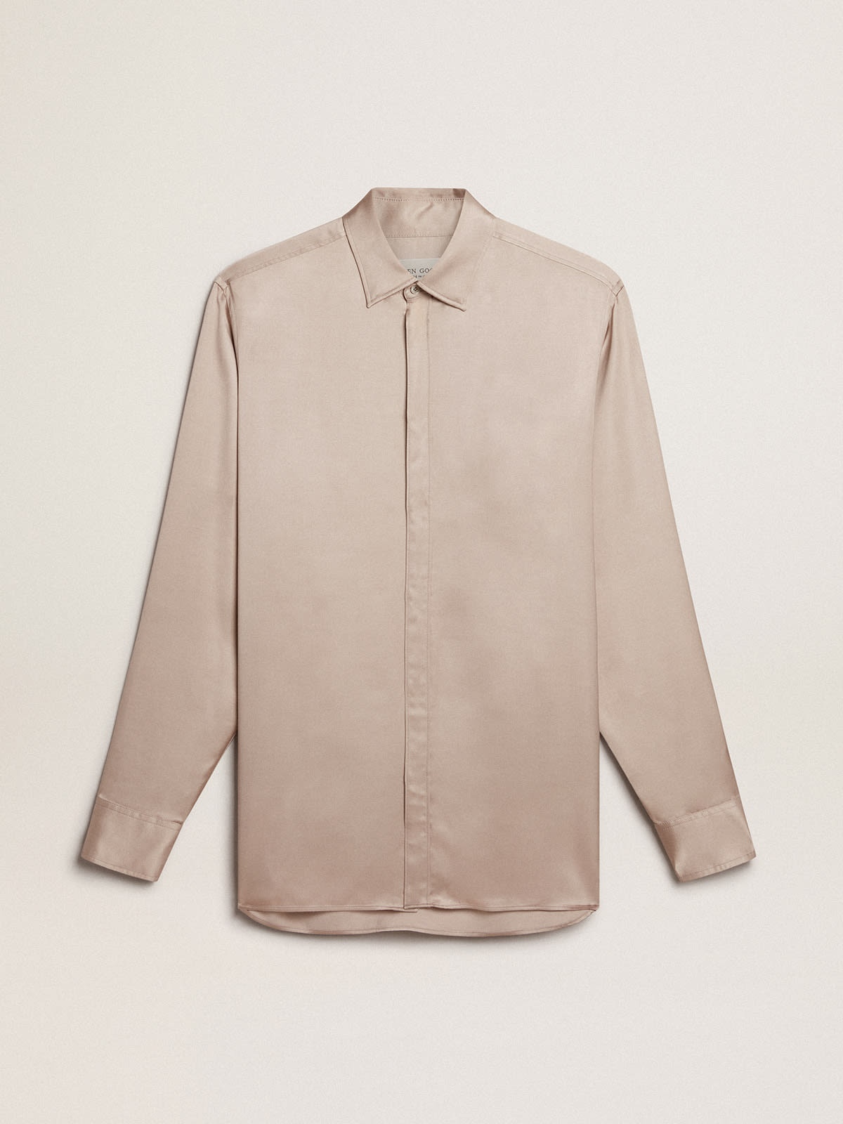 An ode to Venice, our home, seen with the eyes of those dreamers who live it every day. This Journey Collection explores the city of our roots, drawing inspiration from the people who inhabit it. Different, iconic places now discovered through the life of its lovers. This powder-pink floaty boyfriend shirt is made of viscose satin. This glossy draped shirt has a feminine color that goes easily with both warm and cool shades. DETAILS Item No. GWP00820.P001164.25172 - Journey Collection - Color: powder pink - Double star on the back - Boyfriend fit - Concealed mother-of-pearl buttons - Main material: 100% viscose - Made in Italy The model is 177 cm tall and is wearing a size S.