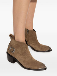 buckle heeled boots Highlights - Brown - Suede - Side zip fastening - Block heel - Pointed toe - Buckle detail Made in Italy Composition Outer: Calf Suede 100% Lining: Leather 100% Sole: Leather 100%