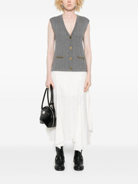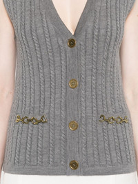 cable-knit chain-detail vest Highlights - Grey - Cable knit - V-neck - Button fastening - Chain detail - Sleeveless Imported Composition Fabric 100% SIZE & FIT Model measurements Height 5 ft 9 in(1.75 m) Bust/Chest 34.64 in(88 cm) Hips 36.61 in(93 cm) Waist 26.37 in(67 cm)