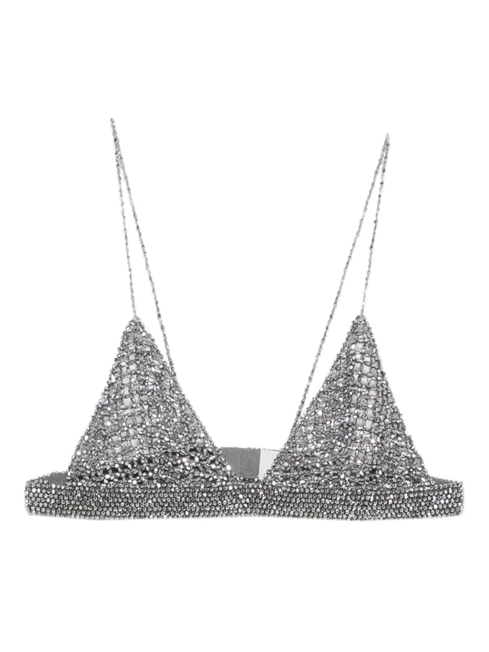 chain embellished top Highlights - Silver-tone - Chain embellishment - Triangle cups - Spaghetti straps Imported Composition glass 100%, Cotton 65%, Polyester 35% SIZE & FIT Model measurements Height 5 ft 11 in(1.8 m) Bust/Chest 32.28 in(82 cm) Hips 36.22 in(92 cm) Waist 25.19 in(64 cm) FittingInformation Designed for a close fit throughout Made from a midweight non-stretch fabric Washing instructions Dry Clean Only