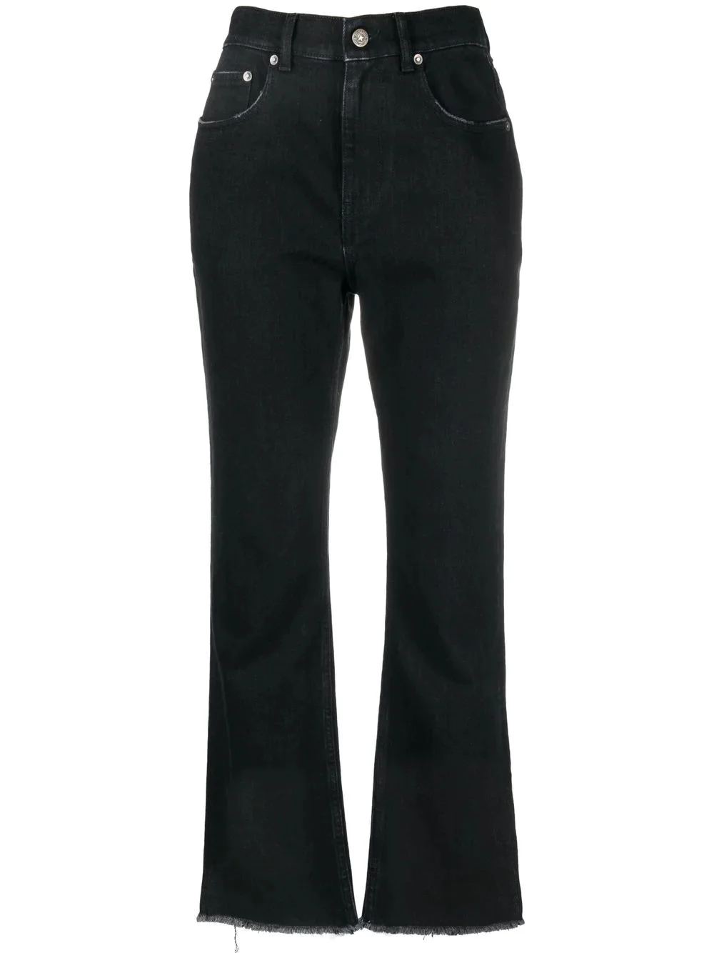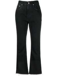 cropped straight-leg jeans cropped straight-leg jeans from Golden Goose featuring black, stretch-cotton, cropped leg, straight leg, classic five pockets and front button fastening. Made in Italy Composition Lining: Polyester 65%, Cotton 35% Outer: Cotton 98%, Spandex/Elastane 2% SIZE & FIT Model measurements Height 5 ft 10 in(1.79 m) Bust/Chest 31.49 in(80 cm) Hips 35.03 in(89 cm) Waist 23.62 in(60 cm) FittingInformation This piece fits true to size. We recommend you get your regular size Cut for a slim fit Made with a mid-weight stretch fabric Washing instructions Dry Clean Only