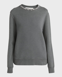 Distressed Crystal-Embellished Crewneck Sweatshirt