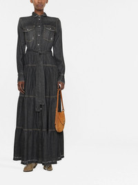 distressed denim shirt dress Renowned for their expertly crafted sneakers that showcase a love-worn look, Golden Goose's rebellious aesthetic is highlighted in the design of this denim shirt dress. A frayed hem offers a distressed finish to the timeless silhouette. Made in Italy Composition Lining: Cotton 80%, Polyester 20% Outer: Cotton 100% SIZE & FIT Model measurements Height 5 ft 10 in(1.77 m) Bust/Chest 31.49 in(80 cm) Hips 33.85 in(86 cm) Waist 22.44 in(57 cm) FittingInformation This piece fits true to size. We recommend you get your regular size Cut for a loose fit. Comes with an adjustable belt for a flexible fit at the waist Made with a mid-weight non-stretch fabric