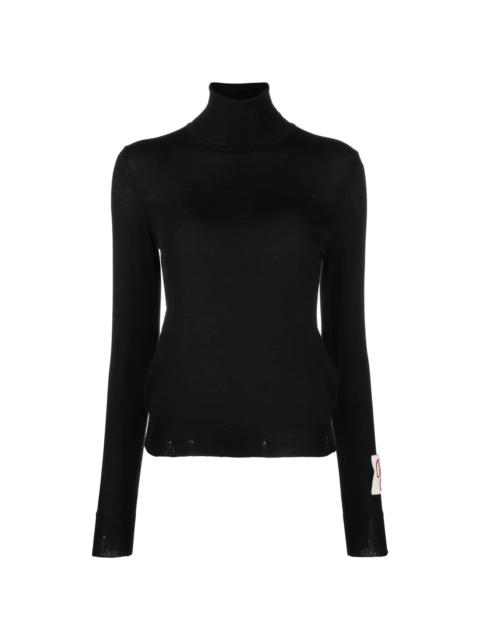 distressed roll-neck virgin wool jumper sand beige virgin wool distressed finish ribbed-knit edge roll neck long sleeves straight hem Made in Italy Composition Virgin Wool 100% SIZE & FIT Model measurements Height 5 ft 10 in(1.78 m) Bust/Chest 30.31 in(77 cm) Hips 36.61 in(93 cm) Waist 24.8 in(63 cm) Washing instructions Hand Wash