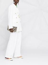 double-breasted belted blazer Empower your look with this white double-breasted belted blazer from Golden Goose. Cinched at the waist with a belt, this stand-out piece makes all the power moves for you with its peaked lapels, shoulder pads, and long-line style. Make your mark. Made in Italy Composition Lining: Viscose 64%, Cupro 36% Outer: Viscose 100% SIZE & FIT Model measurements Height 5 ft 11 in(1.8 m) Bust/Chest 32.67 in(83 cm) Hips 36.22 in(92 cm) Waist 24.4 in(62 cm) Measurement CHEST 18.89 in(48 cm) SLEEVE LENGTH 25.59 in(65 cm) LENGTH 30.7 in(78 cm) Washing instructions Dry Clean Only