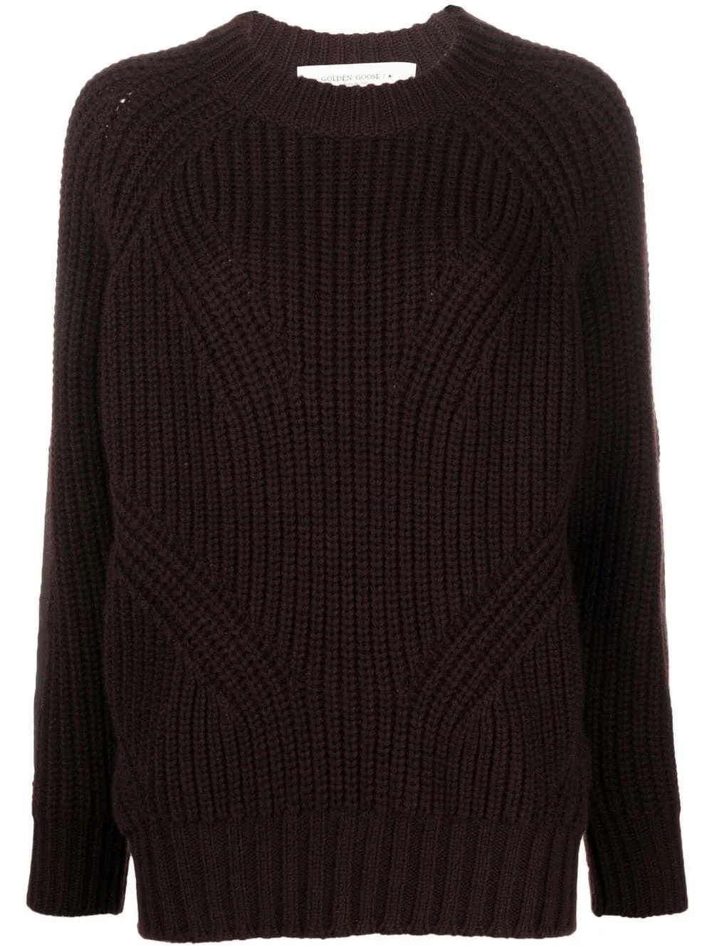 elbow-patch ribbed-knit jumper brown virgin wool/leather ribbed knit elbow patches round neck long raglan sleeves seam detailing ribbed edge Made in Italy Composition Virgin Wool 100%, Goat Skin 100% SIZE & FIT Model measurements Height 5 ft 10 in(1.78 m) Bust/Chest 30.31 in(77 cm) Hips 36.61 in(93 cm) Waist 24.8 in(63 cm) FittingInformation This piece fits true to size. We recommend you get your regular size Cut for a loose fit Made with a mid-weight fabric Washing instructions Dry Clean Only