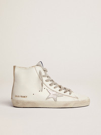 The basketball world has always had a strong design influence on our collections. Francy is a vintage style influenced and inspired by the 70s with the addition of Golden Goose exclusive details and finishes. DETAILS Item No. GWF00113.F000319.10274 - Calfskin upper - Suede star - Rubber sole - Timeless GGDB Style - 3cm insole - The shoe in the photo is size 39 - Handcrafted - Made in Italy