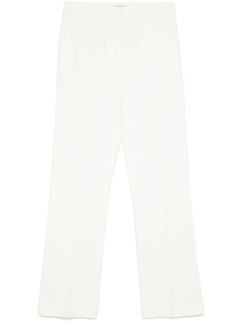Maewa trousers Highlights - White - Concealed front button, hook and zip fastening - Belt loops - Two side slit pockets - Applique logo Made in Italy Composition Outer: Viscose 70%, Virgin Wool 30% Lining: Cotton 100% SIZE & FIT Model measurements Height 5 ft 11 in(1.8 m) Bust/Chest 33.07 in(84 cm) Hips 37.4 in(95 cm) Waist 25.19 in(64 cm) FittingInformation Designed for a straight-leg fit, these trousers allow for a close fit at the waist and an unrestricted, comfortable fit over the leg Made from a midweight non-stretch fabric
