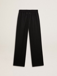 Inspired by the electric energy of the Nineties, the collection celebrates the limitless power of shared dreams. Moved by passion, each design captures the meaning of togetherness and the power of music. These black joggers in lightweight wool feature a loose-fit long leg and two appliqued stars on the back. DETAILS Item No. GWP00821.P001170.90100 - Journey Collection - Color: black - Loose leg - Two pockets - Double star on the back - Main material: 100% virgin wool - Pocket lining: 100% viscose - Made in Italy The model is 177 cm tall and is wearing a size 40.