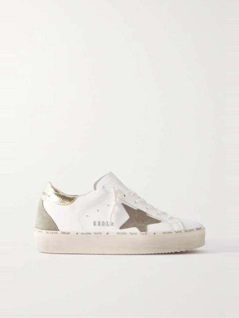 Hi Star distressed suede- and snake-effect-trimmed leather sneakers White
