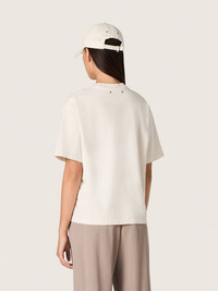The second drop of Spring/Summer '26 carries the fingerprints of cultures we’ve met along the way – a wardrobe full of spirit, that no matter how diverse, always feels like home. A classic in casual style: crafted from heritage white cotton jersey, this women's T-shirt features a crew-neck silhouette and a boxy fit. The black and gray star print on the front and the iconic double star on the back complete the look. DETAILS Item No. GWP01874.P002372.11560 - Journey Collection - Color: heritage white - Women's T-shirt - Boxy fit - Crew-neck style - Black and gray star print on the front - Double star on the back - Main material: 100% cotton - Made in Italy The model is 177 cm tall and is wearing a size S.