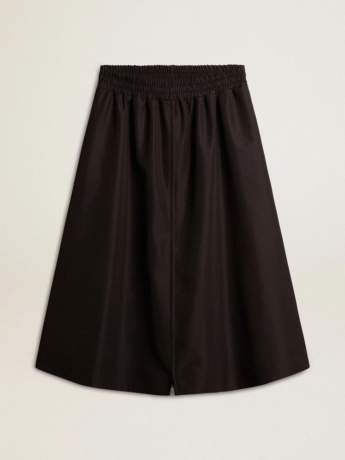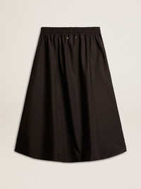 A love story to our home, Marghera. Where everything began. Our latest collection reflects the spirit of our birthplace, its contrasts, industrial soul, and manufacturing landscapes, weaving together inspirations from both the vibrant energy of workwear and the refined essence of traditional tailoring. In a technical nylon fabric, this flared skirt with elasticated band features two side pockets and a front zip. DETAILS Item No. GWP01953.P001618.90100 - Journey Collection - Color: black - Double star on the back - Regular fit - Elasticated waistband - Two pockets - Front zip - Main material: 100% polyester - Made in Italy The model is 177 cm tall and is wearing a size 40.