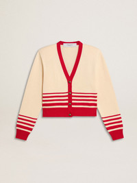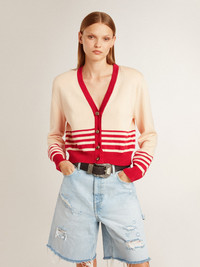 Women's cardigan in cream with red stripes