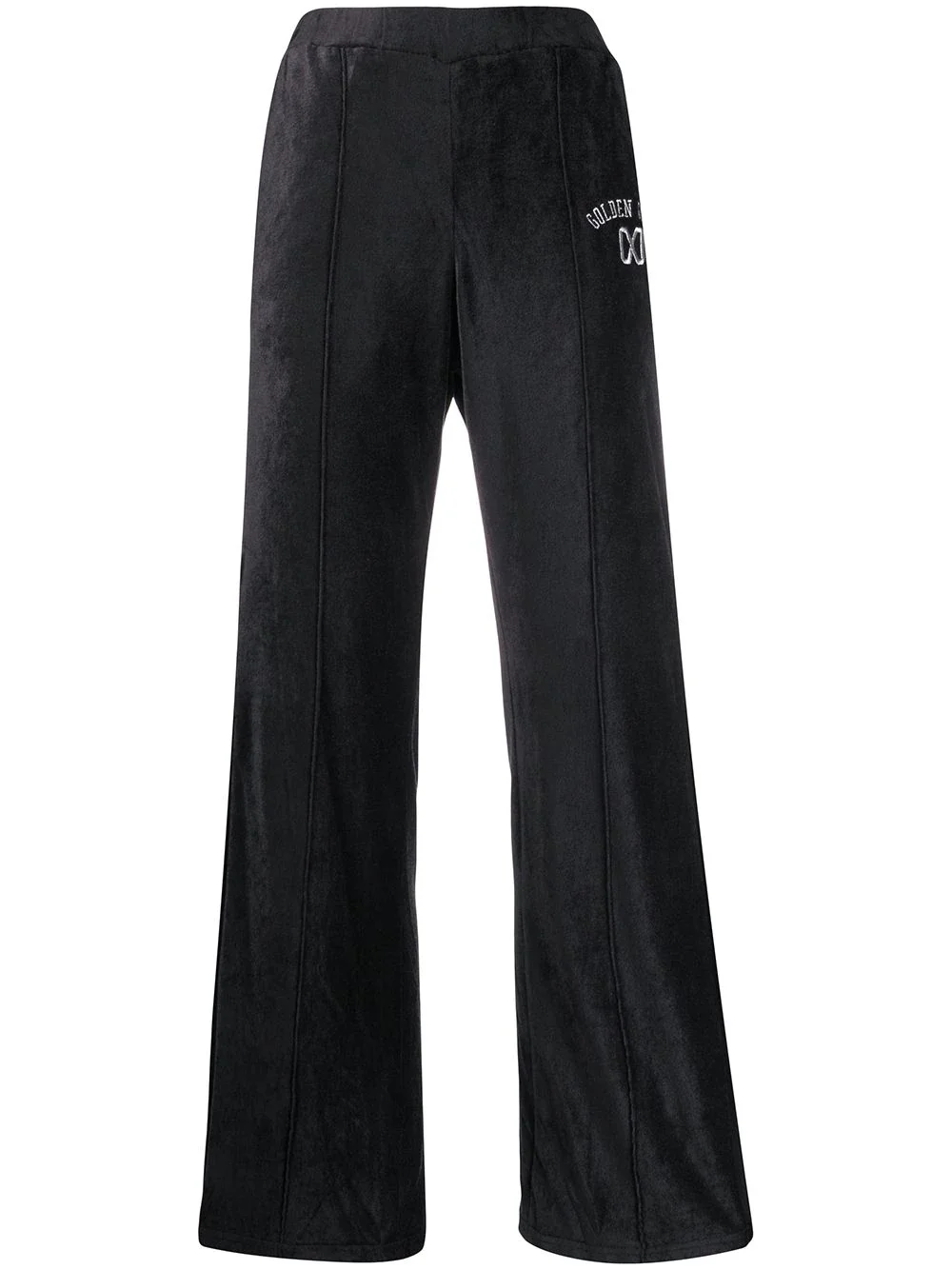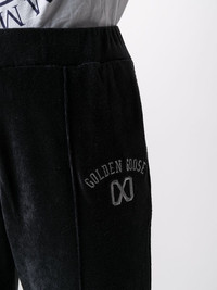 Kelly wide-leg trousers Do you think that there’s no way style and supreme comfort can come together? Think again. Cut in a relaxed fit for all-day comfort, these midnight blue Kelly wide-leg trousers from Golden Goose are living proof that you can have it all. You know you deserve it. Featuring an embroidered logo to the front, an elasticated waistband, a pull-on style and a wide leg. Made in Italy Composition Outer: Viscose 88%, Nylon 14% Lining: Viscose 64%, Cupro 36% SIZE & FIT Model measurements Height 5 ft 9 in(1.76 m) Bust/Chest 33.07 in(84 cm) Hips 34.64 in(88 cm) Waist 25.59 in(65 cm) FittingInformation This piece fits true to size. We recommend you get your regular size Cut for a loose fit Made with a mid-weight fabric Washing instructions Dry Clean Only