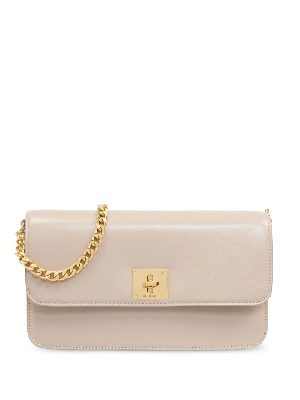 leather shoulder bag Highlights - Beige - Calf leather - Smooth grain - Tonal stitching - Foldover top - Turn-clasp fastening - Logo-engraved gold-tone hardware - Chain-link shoulder strap - Adjustable shoulder strap - Partitioned compartment - Internal zip-fastening pocket - Internal slip pocket Made in Italy Composition Outer: Calf Leather 100%