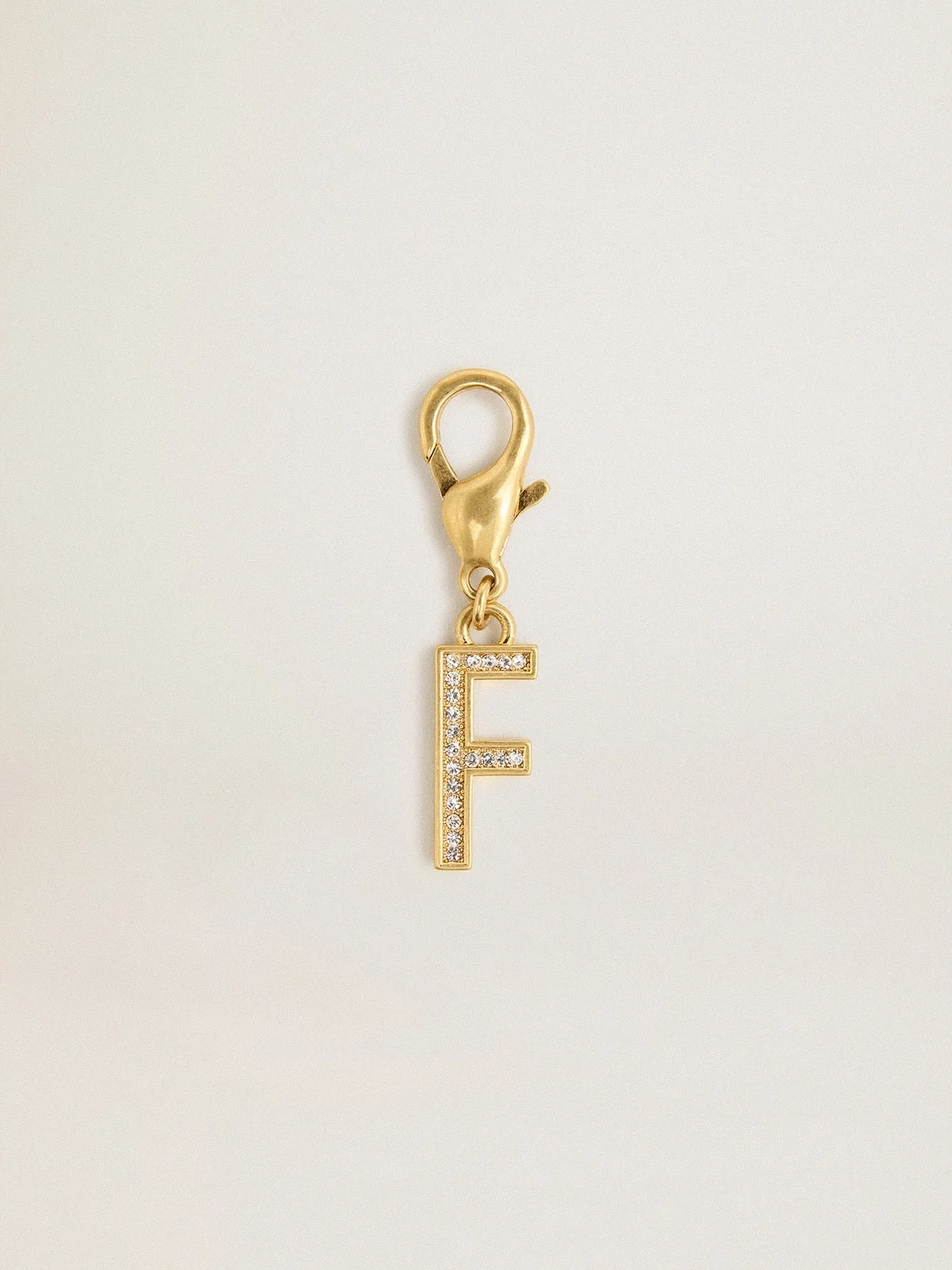 Letter F charm in gold-colored brass with crystals