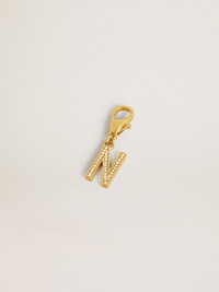 Letter N charm in gold-colored brass with crystals