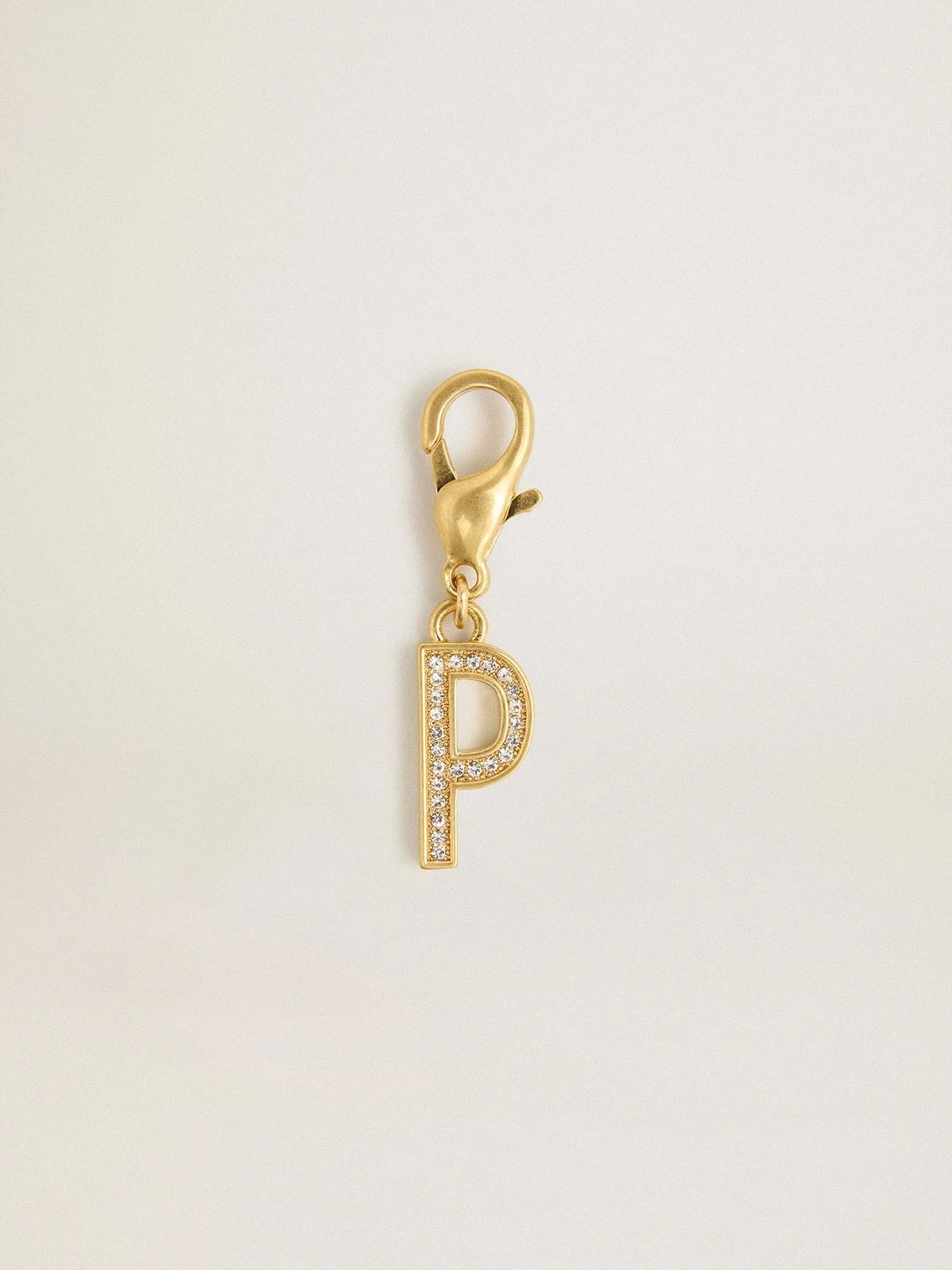 Letter P charm in gold-colored brass with crystals