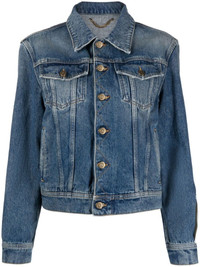 logo-patch denim jacket Arriving in blue cotton, this denim jacket is defined by a contrasting logo patch at the sleeve. This piece is finished with two front flap pockets and a front button fastening. Made in Italy Composition Outer: Cotton 100% Lining: Polyester 65%, Cotton 35% SIZE & FIT Model measurements Height 5 ft 10 in(1.78 m) Bust/Chest 30.7 in(78 cm) Hips 34.6 in(88 cm) Waist 23.2 in(59 cm) FittingInformation This piece fits true to size. We recommend you get your regular size Cut for a loose fit Made with a mid-weight non-stretch fabric